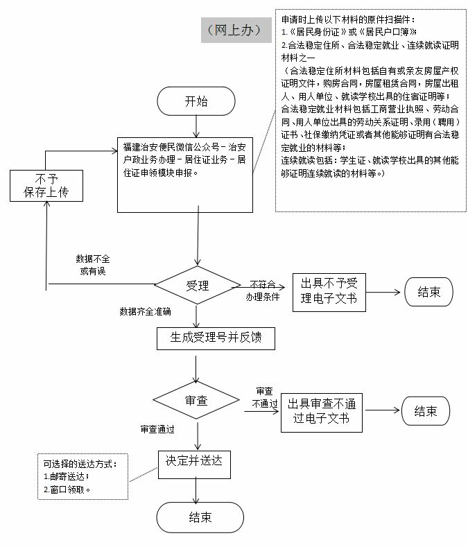 手機端“閩政通”APP→首頁“全部”→“我的服務”(選擇戶政)→“戶籍業務辦理”→“核發居住證”→“居住證申領”;