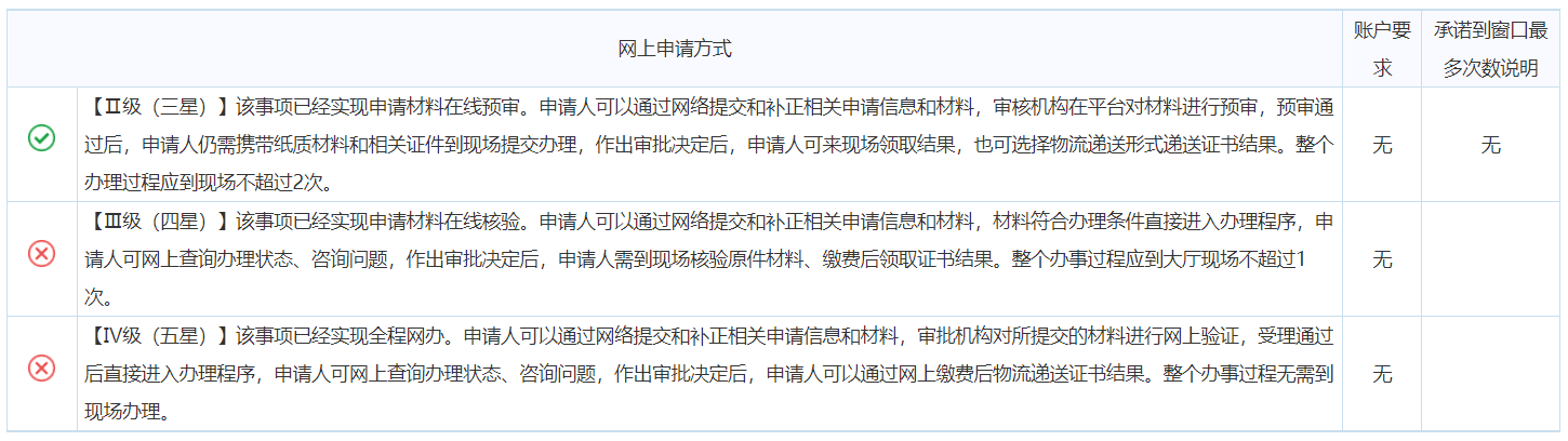 | 網(wǎng)上辦理深度: | 材料預(yù)審(Ⅱ級) | 通辦范圍: | 全縣 | |||||||||||