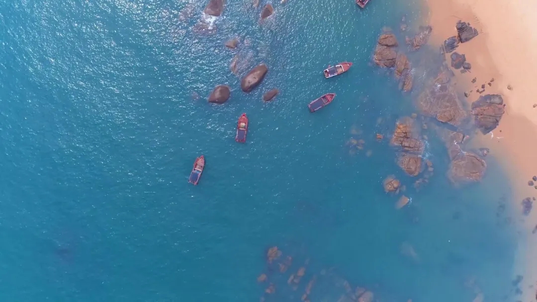 伴著金色的沙灘、藍色的大海、漂浮的點點漁船,